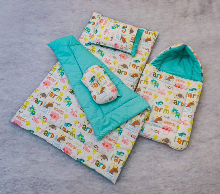این سرویس خواب 5 تکه شامل : پتو، بالشت، تشک، قنداق فرنگی و بالشت فرم دهی و کاور حمل است.