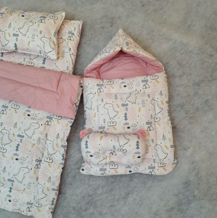 این سرویس خواب 5 تکه شامل : پتو، بالشت، تشک، قنداق فرنگی و بالشت فرم دهی و کاور حمل است.